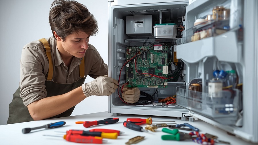 نشانههای معمول خراب شدن برد شامل روشن نشدن یخچال، ارور روی نمایشگر، نوسان دمای یخچال، و صدای کلیک یا تیکتیک هنگام شروع کار است.